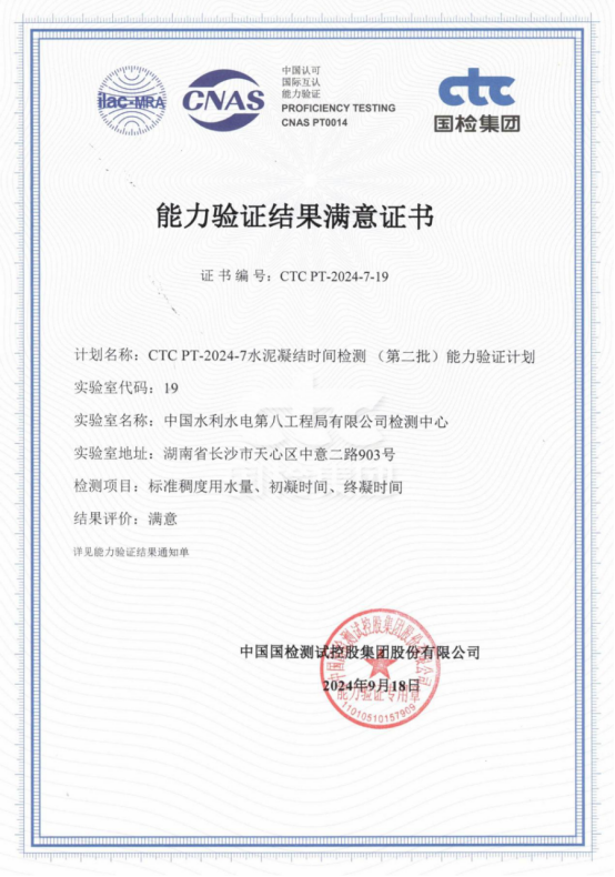 近日,工程局檢測中心收到由中國國檢測試控股集團(tuán)股份有限公司頒發(fā)的“CTC PT-2024-7水泥凝結(jié)時間檢測(第二批)”及“CTC PT-2024-10水泥膠砂強(qiáng)度檢測(第二批)”兩項(xiàng)能力驗(yàn)證證書,顯示檢測中心在參加國檢集團(tuán)組織的2項(xiàng)能力驗(yàn)證結(jié)果為滿意。 水泥作為現(xiàn)代建筑中不可或缺的材料之一,其物理性能直接關(guān)系到建筑物的質(zhì)量和安全。因此,水泥物理性能的準(zhǔn)確檢測顯得尤為重要。此次能力驗(yàn)證活動涵蓋了水泥的多個關(guān)鍵性能指標(biāo),包括強(qiáng)度、凝結(jié)時間等。檢測中心順利通過驗(yàn)證,展現(xiàn)了高水平的檢測能力和嚴(yán)謹(jǐn)?shù)脑囼?yàn)態(tài)度。 中國國檢控股集團(tuán)股份有限公司作為國內(nèi)領(lǐng)先的檢測機(jī)構(gòu),其舉辦的能力驗(yàn)證活動具有極高的權(quán)威性和公信力。此次取得滿意結(jié)果,是對檢測中心檢測技術(shù)和能力的肯定,也是對檢測中心持續(xù)追求卓越、不斷改進(jìn)質(zhì)量的鼓勵。檢測中心將繼續(xù)保持嚴(yán)謹(jǐn)?shù)目茖W(xué)態(tài)度和高效的工作作風(fēng),繼續(xù)積極參與各類能力驗(yàn)證活動,與國內(nèi)外同行交流學(xué)習(xí),共同推動檢測行業(yè)的進(jìn)步和發(fā)展,為建筑行業(yè)健康發(fā)展貢獻(xiàn)力量。