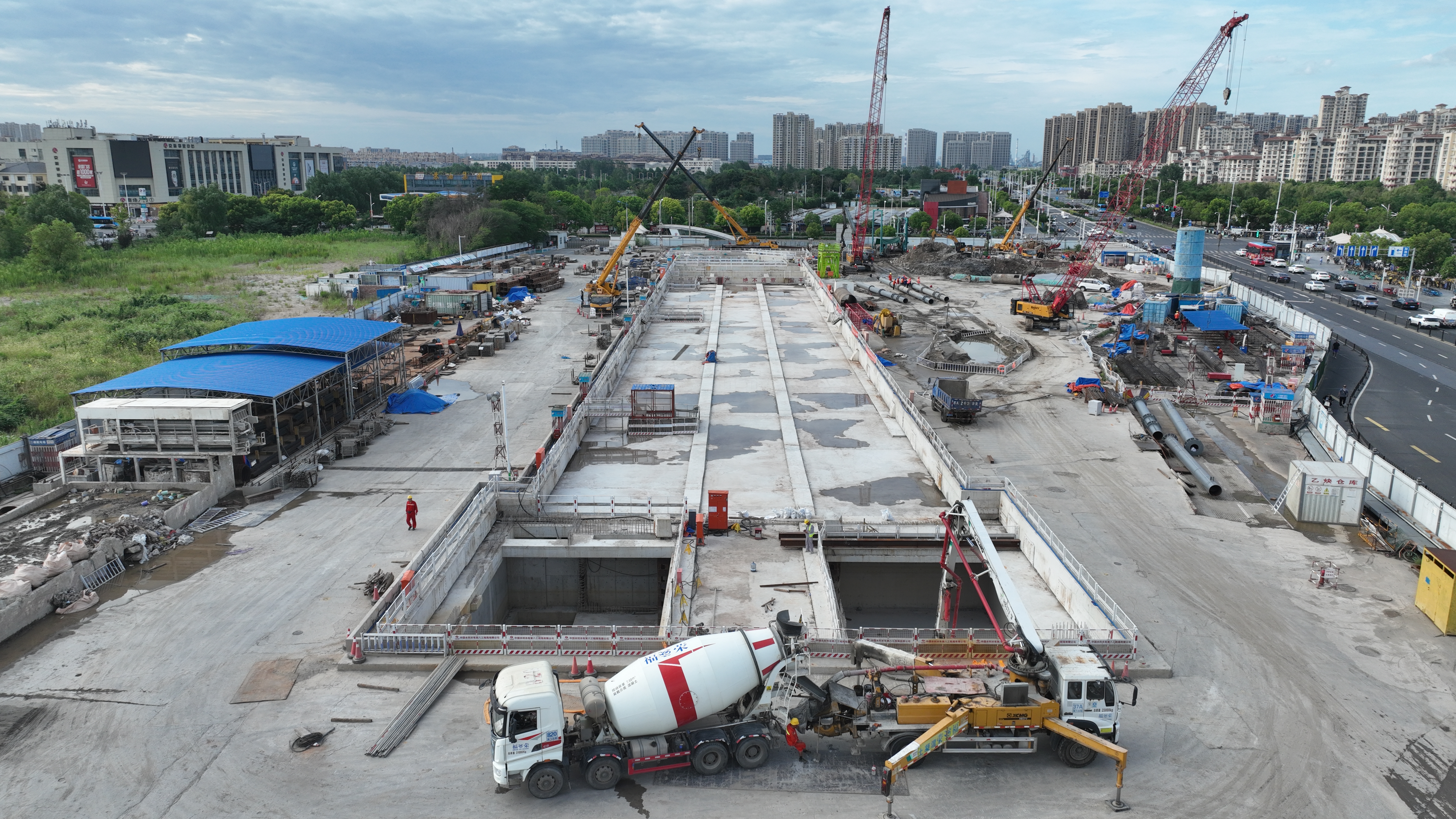 7月29日,水電八局承建的南京地鐵11號(hào)線柳洲東路站主體結(jié)構(gòu)實(shí)現(xiàn)封頂,成為全線首個(gè)采用明挖順作與蓋挖逆作結(jié)合施工封頂?shù)能囌尽?/p> 南京地鐵11號(hào)線是加強(qiáng)南京市江北新區(qū)總體規(guī)劃發(fā)展的重要支撐,對(duì)進(jìn)一步加快構(gòu)筑快速交通網(wǎng)絡(luò),促進(jìn)經(jīng)濟(jì)社會(huì)可持續(xù)高質(zhì)量發(fā)展具有重要意義。工程一期南起馬騾圩站,北至浦洲路站,整體呈西南—東北走向,沿浦濱路、萬壽路、浦珠北路、江山路敷設(shè),路線全長(zhǎng)約26.7千米。全線共設(shè)置車站20座,其中換乘站9座,水電八局承建TA03標(biāo)六工區(qū)包含兩站一區(qū)間,分別為明濱路站、柳洲東路站及明柳區(qū)間。 柳洲東路站是南京地鐵11號(hào)線一期工程20座車站中施工組織最困難、安全風(fēng)險(xiǎn)最高、結(jié)構(gòu)最復(fù)雜、工法多樣的四層車站,為全線觀摩站點(diǎn),總長(zhǎng)177.4米,寬23.3米,深29.6米。車站地下一、二層采用明挖順作法施工,地下三、四層采用蓋挖逆作法施工。車站附屬設(shè)2個(gè)出入口、3座風(fēng)亭組,1個(gè)換乘通道,車站兩端均為盾構(gòu)接收端。 由于柳洲東路站與既有地鐵3號(hào)線換乘,涉及既有車站結(jié)構(gòu)改造,周邊環(huán)境復(fù)雜;且車站隸屬于長(zhǎng)江漫灘地貌單元,場(chǎng)地沿線工程活動(dòng)較為強(qiáng)烈,原始地貌破壞情況較嚴(yán)重;近地表廣泛分布全新雜填土、粉砂、粉細(xì)砂,地下水類型主要為松散巖類孔隙水及基巖裂隙水,場(chǎng)地常年最高地下水位為地面下0.5米,地層穩(wěn)定性很差,對(duì)工程推進(jìn)造成一定影響。為解決這些難題,項(xiàng)目部組建“黨員項(xiàng)目攻關(guān)”團(tuán)隊(duì),劃分“黨員責(zé)任區(qū)”,深入實(shí)施“雙引雙建”黨建工程,聚焦項(xiàng)目生產(chǎn)經(jīng)營(yíng)確定黨員攻關(guān)課題,召開專題會(huì)議,制定可行性措施,有效促進(jìn)安全生產(chǎn)、項(xiàng)目履約目標(biāo)如期實(shí)現(xiàn)。 柳洲東路站主體結(jié)構(gòu)地連墻接頭采用十字鋼板接頭型式,相較于傳統(tǒng)工字鋼型式,具有抗變形能力強(qiáng)、地連墻整體性好、接頭抗?jié)B能力好等優(yōu)點(diǎn),基坑開挖后接頭處滲漏大幅減少;基坑降水采用智能化降水系統(tǒng),可以實(shí)現(xiàn)觀測(cè)井水位自動(dòng)監(jiān)測(cè)與實(shí)時(shí)顯示,設(shè)定水位報(bào)警值,水位過高或過低時(shí)自動(dòng)報(bào)警,并自動(dòng)開啟或關(guān)停抽水井的水泵,大大提高了工作效率,能夠有效應(yīng)對(duì)基坑開挖風(fēng)險(xiǎn);基坑鋼支撐支護(hù)增設(shè)支撐軸力伺服系統(tǒng),其特點(diǎn)在于融合了數(shù)控液壓技術(shù)、自動(dòng)化監(jiān)測(cè)技術(shù)和物聯(lián)網(wǎng)技術(shù),實(shí)時(shí)監(jiān)控支撐軸力和基坑變形,根據(jù)基坑變形數(shù)據(jù),主動(dòng)調(diào)控支撐軸力,抑制基坑變形,確?;幼冃伟踩煽亍?/p> 截至目前,由水電八局承建的南京地鐵11號(hào)線TA03標(biāo)六工區(qū)正式進(jìn)入收官階段,明濱路站、柳洲東路站已完成主體結(jié)構(gòu)封頂,明柳區(qū)間已完成雙線貫通,各項(xiàng)進(jìn)展均滿足業(yè)主及合同要求。 站在新的起點(diǎn),南京地鐵11號(hào)線項(xiàng)目將持續(xù)強(qiáng)化“雙引雙建”引領(lǐng),切實(shí)增強(qiáng)自身責(zé)任感,聚焦工期進(jìn)度,筑牢安全防線,確保安全生產(chǎn)形勢(shì)持續(xù)穩(wěn)步提升,全力以赴完成項(xiàng)目各項(xiàng)策劃指標(biāo)任務(wù),為打贏收官之戰(zhàn)貢獻(xiàn)無窮力量,以誠(chéng)信履約提升工程局品牌影響力、增強(qiáng)行業(yè)競(jìng)爭(zhēng)力,為穩(wěn)固南京市場(chǎng)提供有力保障! | ||||||